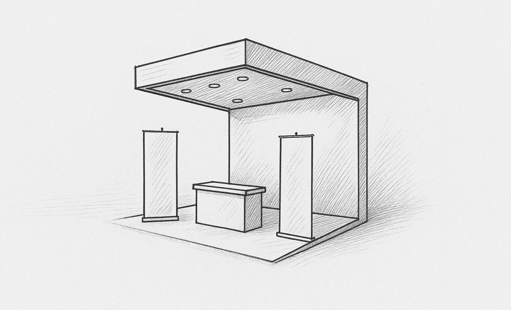 Из плюсов такой визуализации могу отметить, что здесь очень наглядно совмещается визуал фронтальных объектов. Например, задняя стена — на ней будет ясно видны размещённые логотипы или изображения. Но больше я визуализации так не делаю.